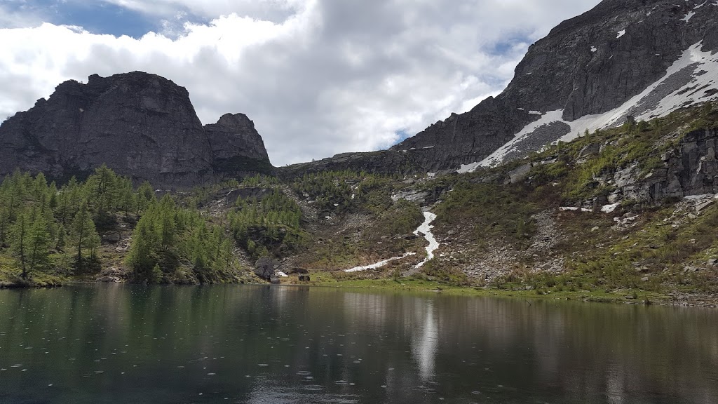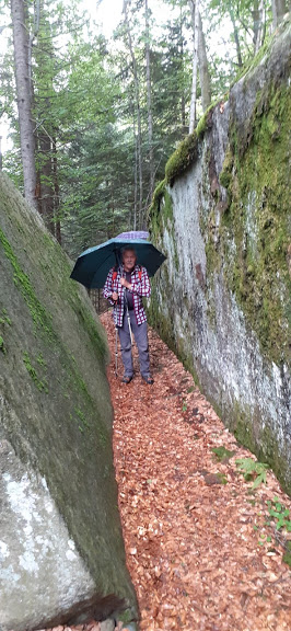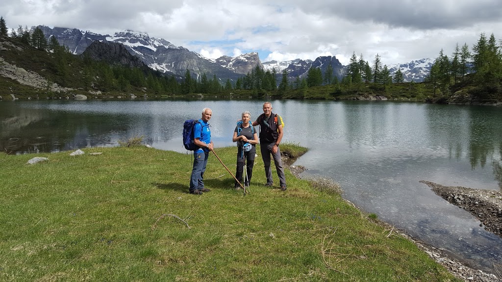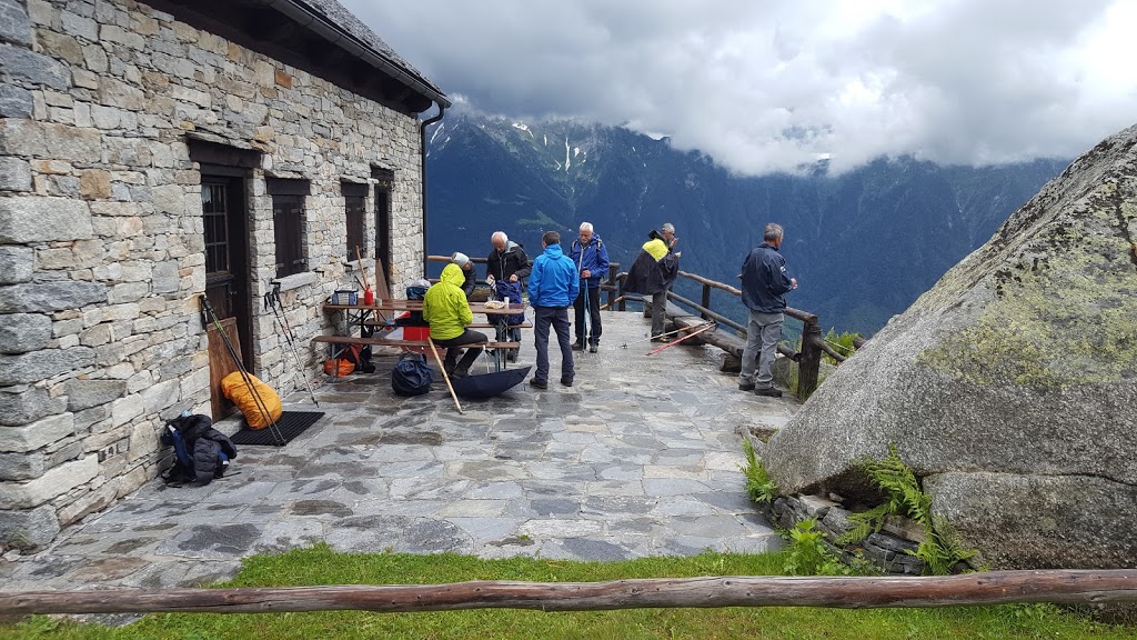 Anni fa avevo trovato questo specchio d’acqua completamente asciutto, mentre oggi ha dimensioni rispettabili e si merita il nome di lago. Camminiamo da circa tre ore. Ci sorprende una leggera pioggia, che si trasforma in grandine, ma è di breve durata. Con salita sempre più ripida arriviamo in meno di un’ora al Passo di Brumei o Bocchetta di Deccia, 2129. Sempre nella stessa direzione, su sentiero ben segnato e inizialmente molto ripido, scendiamo in un’ora al vasto alpeggio di Deccia, 1694. Troviamo dei tavoli per il pranzo, che consumiamo al freddo e con gli ombrelli aperti, che tali resteranno, a tratti, per il resto della giornata.