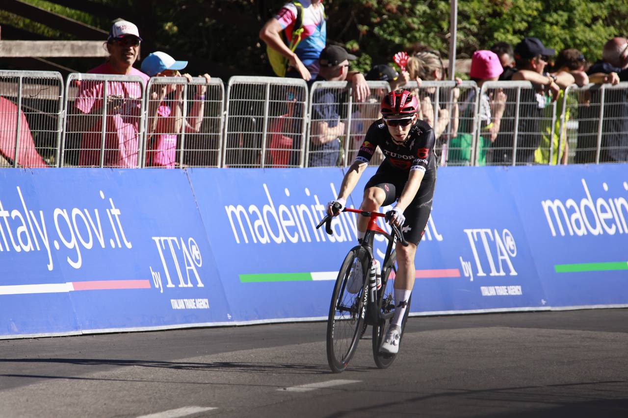 CHAMPOLUC - 30-05-2025 -- Nicholas Prodhomme si aggiudica la 19^ tappa del Giro d'Italia, la Biella-Champoluc. Per lui, arrivato solitario sul traguardo, una vittoria frutto di una fuga partita da lontano che l'ha visto afrronare i cinque Gran Premi della Montagna (per un dislivello di 4.950 metri) dapprima con altri compagni, poi in solitario. La Maglia Rosa, resta sulle spalle di Isaac Del Toro, arrivato secondo a 58", stesso tempo per Richarda Carapaz che ha tentato di accorciare su Prodhomme, senza riuscirci.