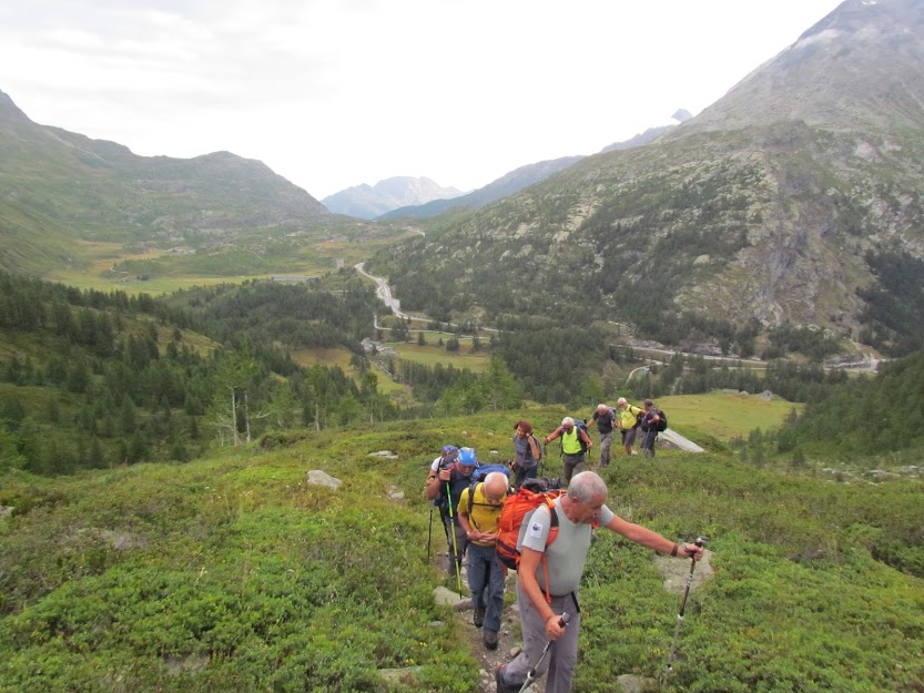 In una giornata per ora nuvolosa due signore, di cui una quasi esordiente, e otto pensionati collaudati parcheggiano a Engiloch, 1769, pochi chilometri prima del Passo del Sempione. La ormai famosa galleria di Paglino, attraversata prima di espatriare, già nota anche all’estero, resta sulla carta, chiusa in qualche importante cassetto degli uffici ANAS a Roma. Anche “Striscia la Notizia” non è più interessata alla tragicomica vicenda. Passando non ci facciamo più caso. L’attrezzatura da pioggia è ormai obbligatoria, salvo casi comprovati di altissima pressione atmosferica. Oggi il caldo non farà danni e, ad un certo punto, lo rimpiangeremo. S