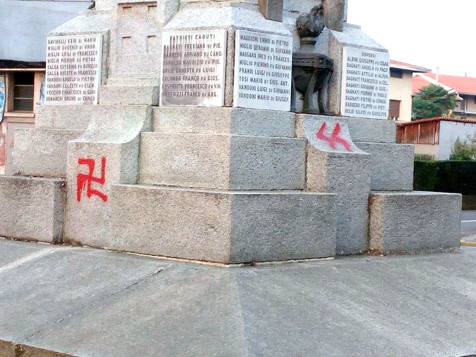 imbrattato il monumento ai caduti di Bellinzago, disegnando delle svastiche con vernice rossa. Il gesto deplorevole è stato compiuto in una notte dei giorni scorsi. In questi giorni l'amministrazione comunale provvederà a ripulire e restaurare il monumento attraverso una ditta specializzata. Grande sdegno della comunità bellinzaghese per l'accaduto. (N.C)