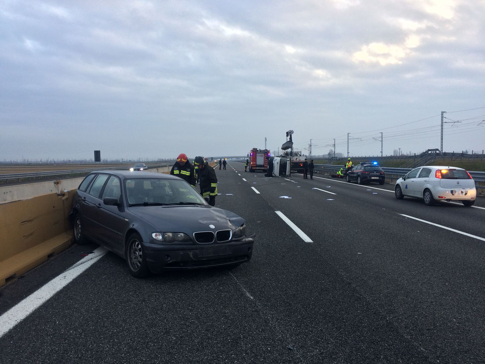 giallo: è il bilancio dell'incidente verificatosi stamattina, mercoledì 22 novembre, poco prima delle 8 in A4, all'entrata di Biandrate in direzione Milano. Nel sinistro sono rimasti coinvolti un furgone, che si è ribaltato, ed un'autovettura. Sul posto, elisoccorso, personale del 118, polizia stradale, personale della società autostradale e vigili del fuoco di Novara, che hanno messo in sicurezza i mezzi convolti.