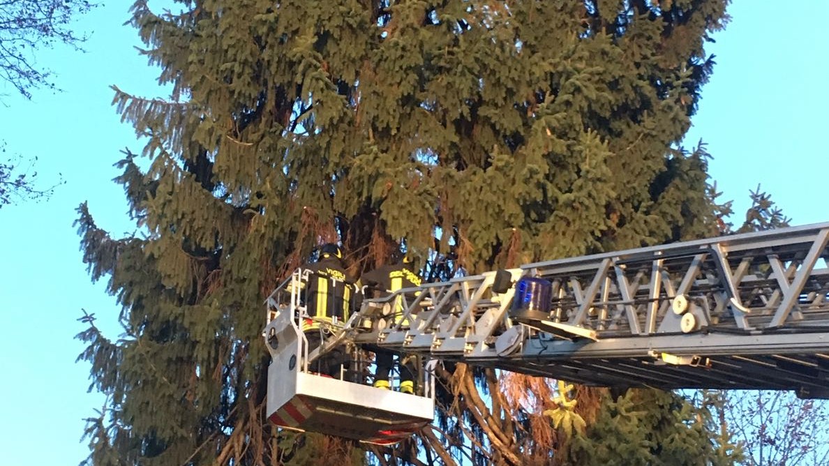 sul vicino Istituto Fauser, in via Ricci, il grosso albero messo in sicurezza nel pomeriggio di oggi dai vigili del fuoco di Novara. Sono intervenuti con autopompa e autoscala per sistemare la situazione ed evitare pericoli.