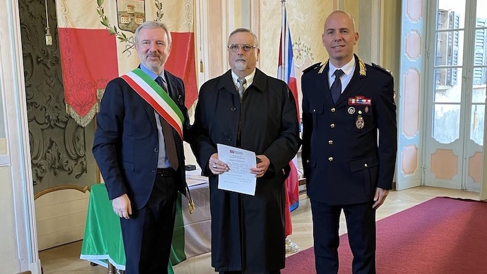 Il primo cittadino di Bellinzago Novarese Fabio Sponghini ha premiato con la stessa motivazione, il commissario Andrea Rognoni, ex-comandante della Polizia locale del paese.
