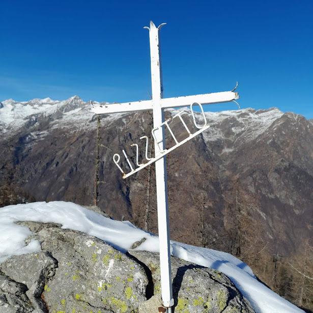 Un’ora e tre quarti da Loro, soprattutto per colpa dei miei rallentamenti. Campo Aostano fu sede di una vera e propria battaglia nel 1411, allorché gli svizzeri, calati dal Monte Moro, tentarono di strappare questa terra al Vescovo di Novara. Attraversiamo la conca e, fino ad ora diretti a sud ovest, viriamo decisamente a oriente raggiungendo, in poco più di un quarto d’ora, la vetta del Pizzetto, 1879, lungo una stretta dorsale che dà, alla nostra destra, sulla Valle Olocchia.