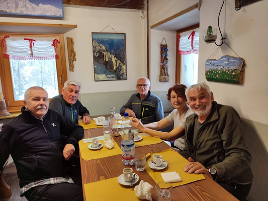 L'accoglienza e il pranzo sono squisiti. Inutile dire che, quando “lasceranno” Marina ed Enrico ad aprile, la montagna ossolana sarà un po' più povera. Sempre sotto un po' di neve e pioggia ripercorriamo il sentiero F06 e, dopo due ore e un quarto, arriviamo alle auto. Oggi ce la siamo già goduta abbastanza e non c'è tempo per il solito drink.