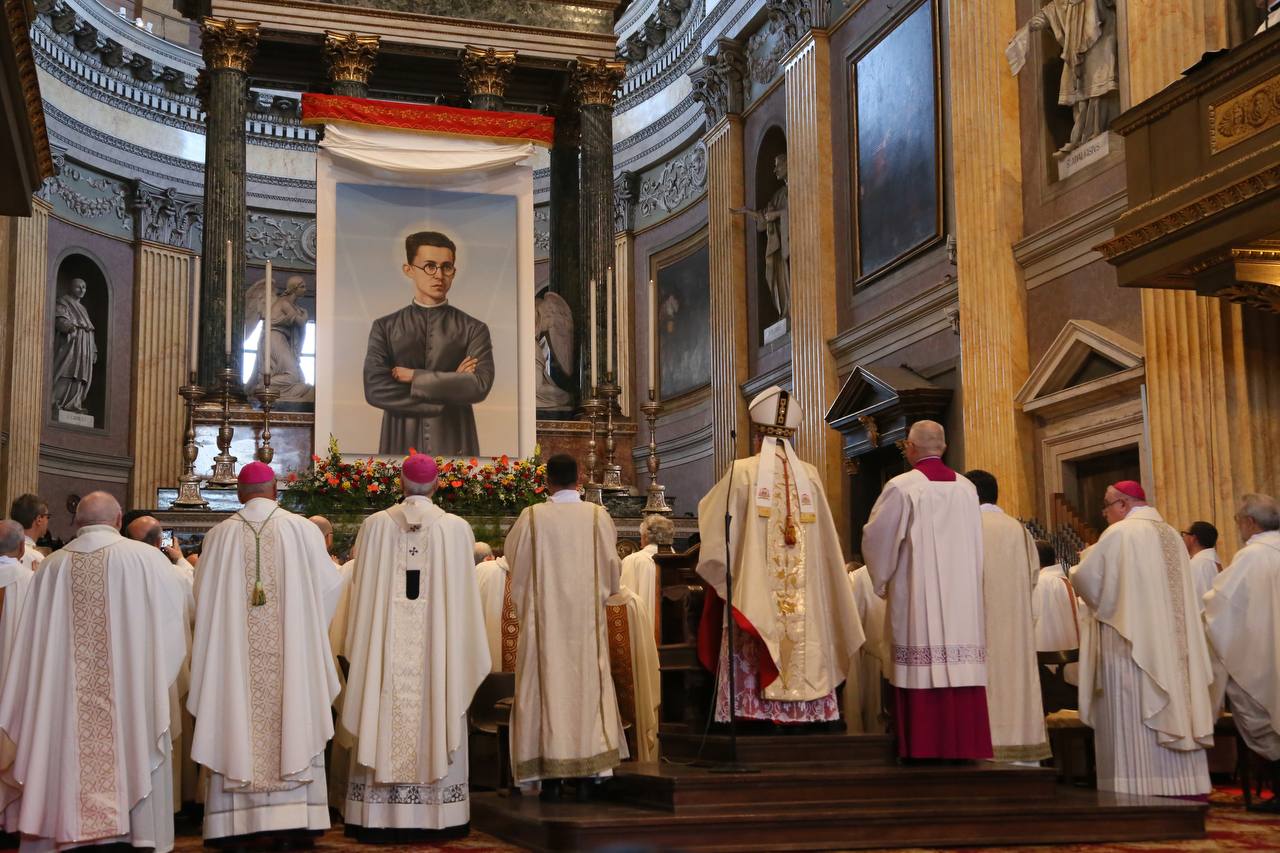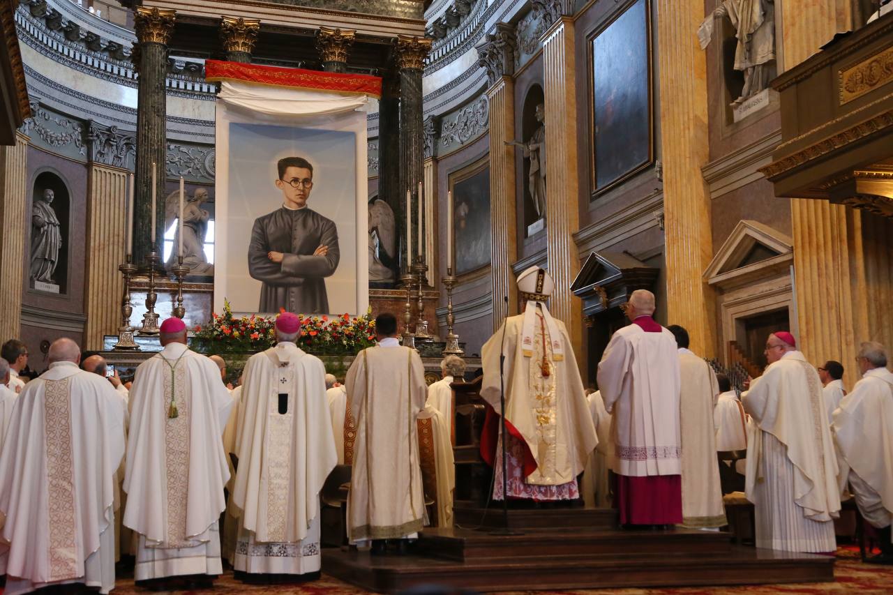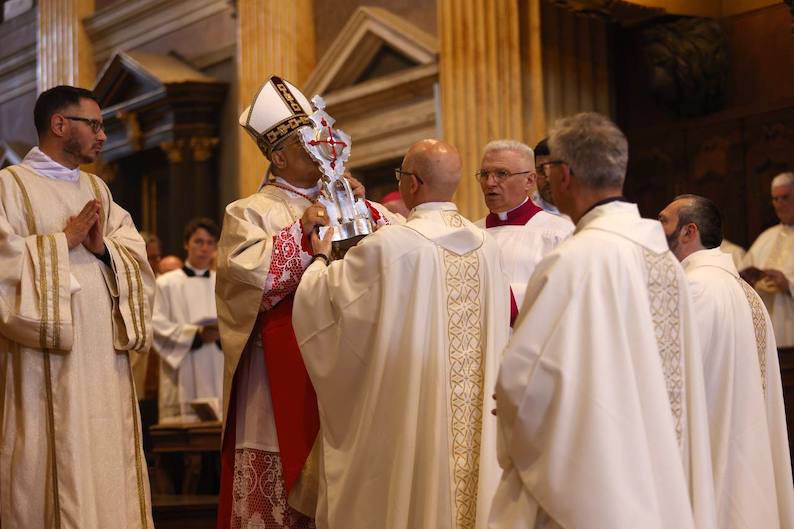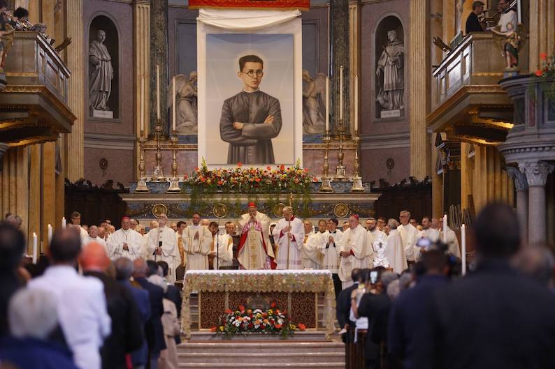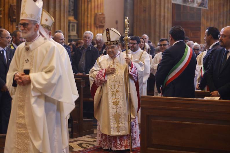 NOVARA - 26-05-2024 -- Cattedrale di Novara gremita per la cerimonia di beatificazione di don Giuseppe Rossi svoltasi domenica 26 maggio. Il rito è stato presieduto dal prefetto del Dicastero per le Cause dei Santi, il cardinale Marcello Semeraro e concelebrato da monsignor Franco Giulio Brambilla, vescovo di Novara con il metropolita arcivescovo di Vercelli monsignor Marco Arnolfo, e il Segretario del medesimo Dicastero, monsignor Gianpaolo Rizzotti. Presenti numerosi altri vescovi e circa 150 sacerdoti.