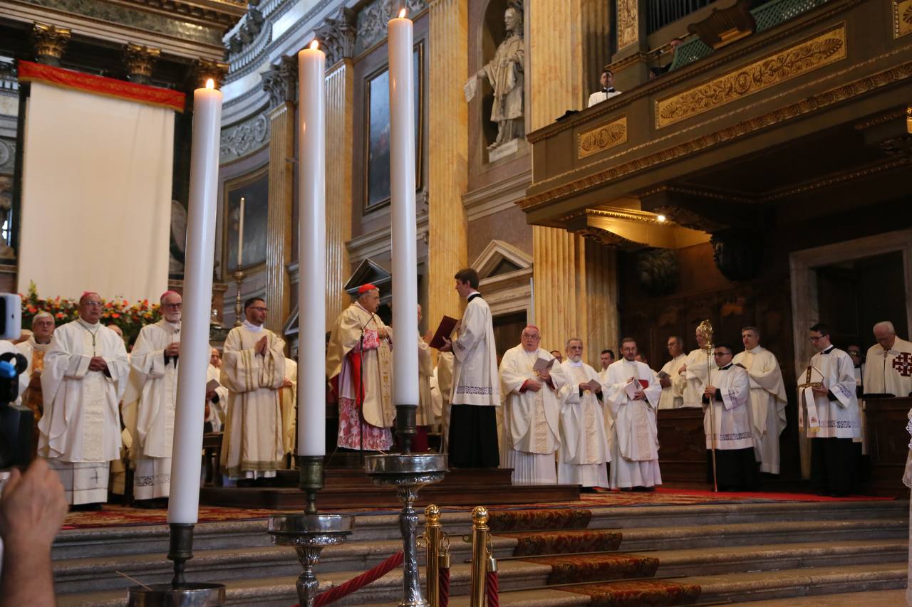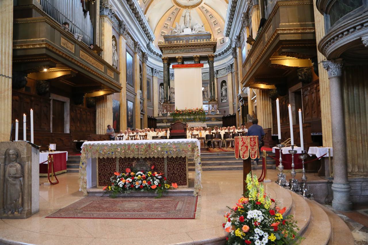Tanti fedeli anche in Basilica di San Gaudenzio, dove è stato allestito un apposito schermo per la trasmissione in streaming della cerimonia per coloro che non sono riusciti ad aggiudicarsi un pass per la Cattedrale.