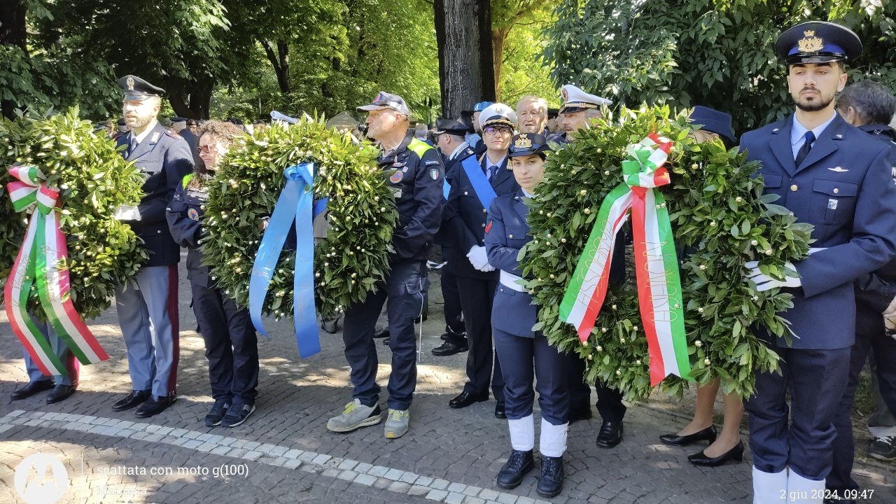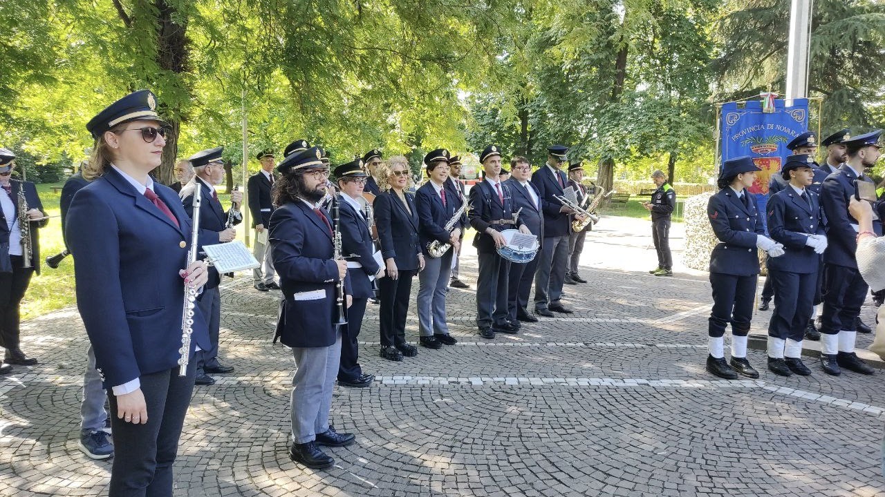 NOVARA - 02-06-2024 -- Si è svolta a Novara, nella mattinata di domenica 2 giugno, la cerimonia in occasione della Festa della Repubblica. Le celebrazioni ufficiali si sono svolte al al Monumento ai Caduti di Viale 4 Novembre con lo schieramento delle Forze Armate, delle Forze dell'Ordine, dei Corpi di Soccorso Pubblico, dei Medaglieri e dei Labari Alzabandiera solenne accompagnato dalle note dell'Inno Nazionale, deposizione delle Corone al Monumento, la lettura del messaggio del Presidente della Repubblica, i saluti delle Autorità, esecuzioni musicali da parte della Banda di Grignasco.