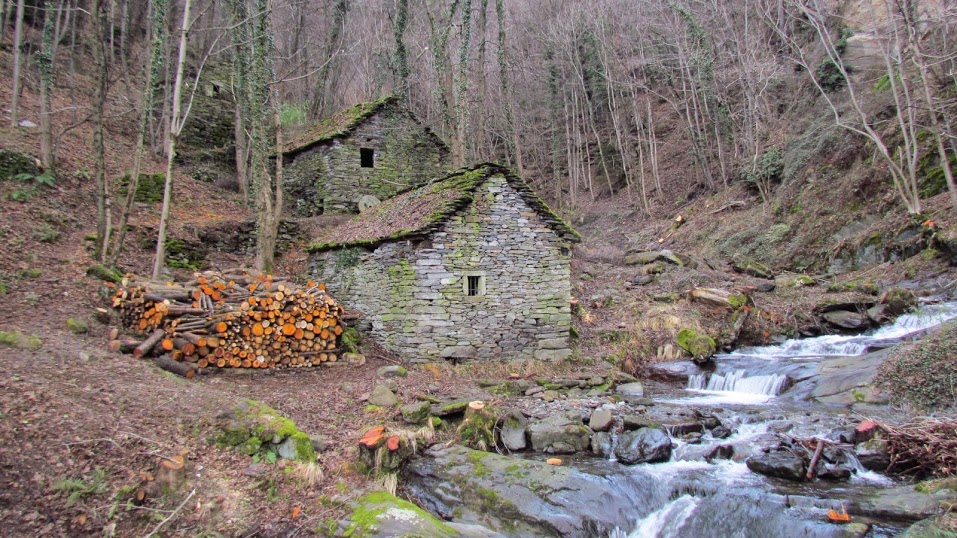 Stessa direzione e, poco più avanti, attraversiamo il Rio Anzuno, costeggiato dai vecchi mulini per la macinazione dei cereali, allineati lungo il corso d'acqua. Sempre su sentiero evidente e ben segnato, che ci condurrà per l'intera giornata, arriviamo alla Cappella dell'Oro, 602 ed al borgo di Tappia, 637 (tre quarti d'ora). Breve pausa colazione e proseguiamo per l' Alpe Maianco Inferiore, 738. Di qui scendiamo per attraversare il rio della Val Stramba, che chiamavamo “dell'Inferno”, senza traccia alcuna di ghiaccio o neve, consueti in questo periodo, e risaliamo a Sogno, 736, considerata la frazione più alta di Villadossola, in mezz'ora.