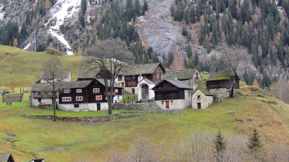 Di qui la proporzione, quasi matematica: l'Inghilterra sta all'Italia come Stonehenge sta ai “Sass dul Pass”. Insieme ad un maturo maestro di sci del posto, io proseguo in auto per circa due chilometri fino a Chioso, 900, e salgo direttamente, lungo strada e mulattiera, agli alpeggi di Vova, 1492, e, di qui, al Motto, 1600, dove si trova la baita – ristorante (strettamente privato!) del nostro ospite, oggi assente (quasi un'ora e tre quarti da Chioso). Gli altri otto da Passo raggiungono Salecchio Inferiore, 1312, lungo strada e sentiero in poco più di un'ora. Qui si respirano secoli di storia ed è sempre emozionante, ma se ne sono già occupati in molti, prima e meglio di me.