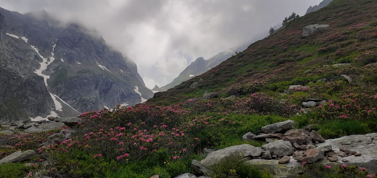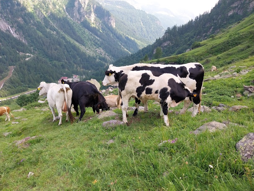 Seguiamo un tratto del tracciato in piano sul quale si trovano ancora alcune delle rotaie, a quota 1940, fino a ritrovare sulla destra il sentiero G35, qui meno evidente, che scende alla Cascata del Toce, 1675 (due ore). Incontriamo tante mucche al pascolo e questo ci apre il cuore. Prima di riaccompagnarci a ritirare le auto, un amico ci ospita a casa sua per un ricco aperitivo. Cosa si può desiderare di più dopo una splendida giornata nei paradisi dell’alta Val Formazza?