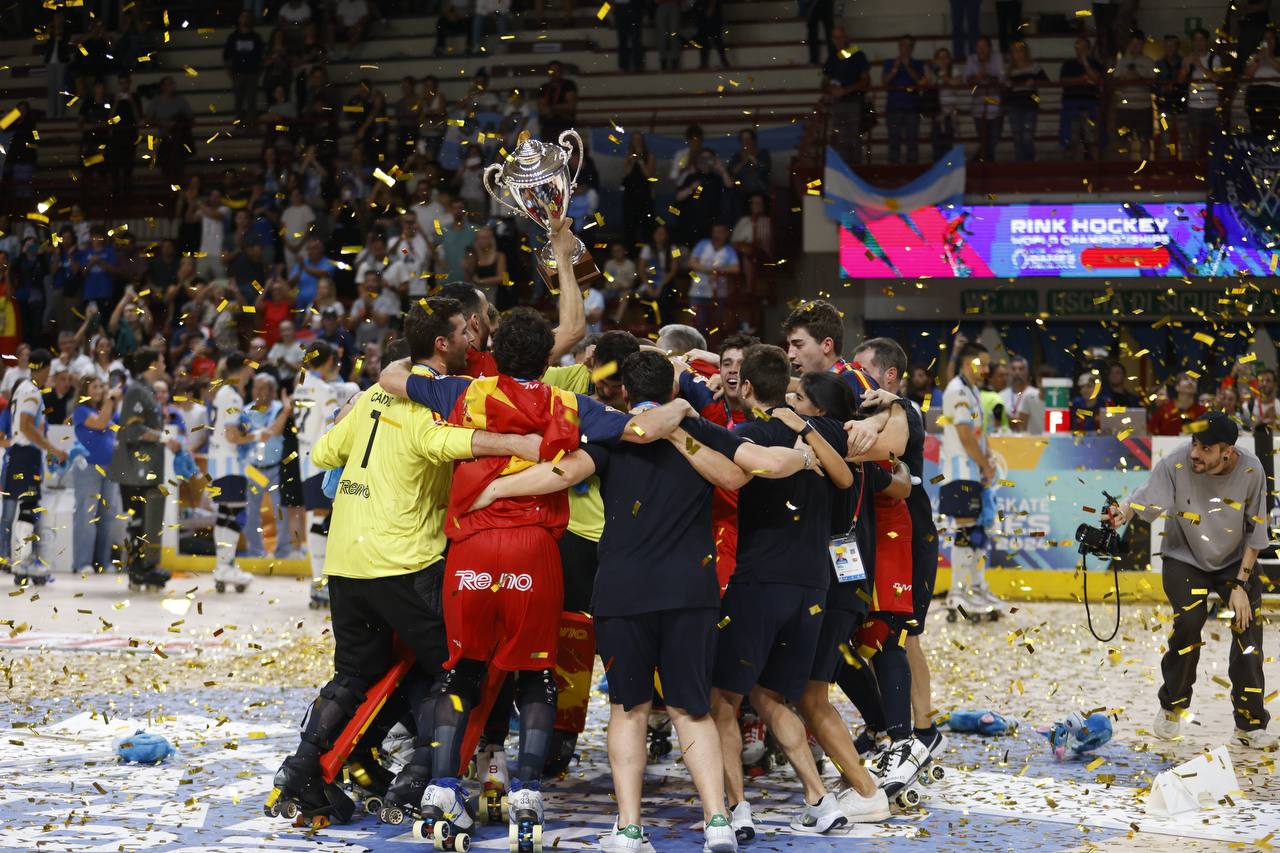 NOVARA - 22-09-2024 -- Spagna campione del mondo di Hockey su pista. Questo il risultato della finale disputatasi nel tardo pomeriggio di domenica 22 settembre al PalaIgor di Novara. Gli iberici si sono imposti per 2-1 sui campioni mondiali uscenti dell'Argentina in una gara dominata sin dall'inizio.