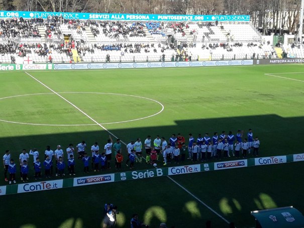 per l’assenza di un bomber adeguato in avanti, ma rischia anche il perdere: prima quando Bisoli ha dagli 11 metri la palla dell’1-0 (che manda fuori), poi nel finale quando Caracciolo costringe Pignacelli alla deviazione in corner e Ghiglione deve inseguire e stendere Embalo lanciato a rete in contropiede. Partita tra due squadre ricche di problemi. La Pro è andata più volte al tiro, ma Minelli non ha mai compiuto un intervento se si eccettua l’uscita di piedi contestata su Castiglia nella ripresa: per la Pro è rigore, ma è sembrato che il portiere abbia prima deviato il pallone e poi colpito l’avversario. E comunque il fatto sarebbe avvenuto fuori area. La Pro prosegue comunque la propria serie positiva frutto di due successi ed un pari odierno, ma ora avrà due gare difficilissime. Prima a Salerno senza Ghiglione, Castiglia e Bergamelli poi al Piola contro il Palermo. Nel I tempo occasioni migliori per i bianchi che le mandano tutte fuori. Al 18’ da Vives a Mammarella che serve tutto solo Ghiglione che manda fuori da buona posizione, un minuto dopo Reginaldo ciabatta fuori in area di rigore. Al 22’ è il generoso ma inconcludente Morra a mettere fuori di testa e al 27’ Konate non arriva su assist di Vives. Al 36’ il Brescia, che non aveva mai impensierito la difesa di casa, usufruisce di un rigore per un fallo netto quanto ingenuo di Bergamelli su Torregrossa. Bisoli però angola troppo e mette fuori. Nella ripresa ci prova Reginaldo in mischia. L’ex Siena ha buoni movimenti, ma avrebbe bisogno di chi lo supporti in area. Non certo Morra, ma neppure Raievic che sarà inguardabile quando subentrerà e neppure il fumoso Konatè. Con questi attaccanti ci prova Castiglia, già bomber con Ascoli e Cremona. Molto bella la conclusione di poco alta al 63’, più velleitaria quella in diagonale al 69’. Poi al 73’ l’episodio contestato con il portiere Minelli che esce alla disperata di piede. Nel finale dopo l’espulsione di Ghiglione, Caracciolo impegna su punizione al 91’ Pignacelli. Finisce 0-0 che sta stretto alla Pro con un Brescia modesto. I bianchi pagano l’assenza di una punta di peso che neppure il mercato di gennaio ha saputo regalare a Grassadonia. Salvezza difficile, ma la squadra ha lottato ed è uscita tra gli applausi del pubblico.