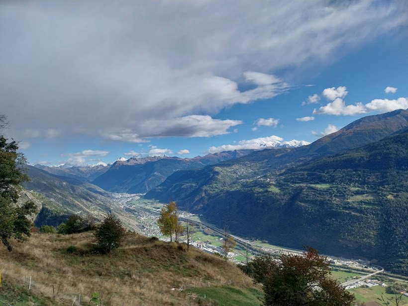 Dopo pochi minuti ci gustiamo il primo panorama sulla valle del Rodano da una cappella nei pressi di una croce che viene illuminata solo in occasione di una morte nel paese, per una vecchia tradizione. Più avanti lasciamo la pista diretta per Jeizinen e imbocchiamo il sentiero per Bratsch, sempre diretti ad occidente.