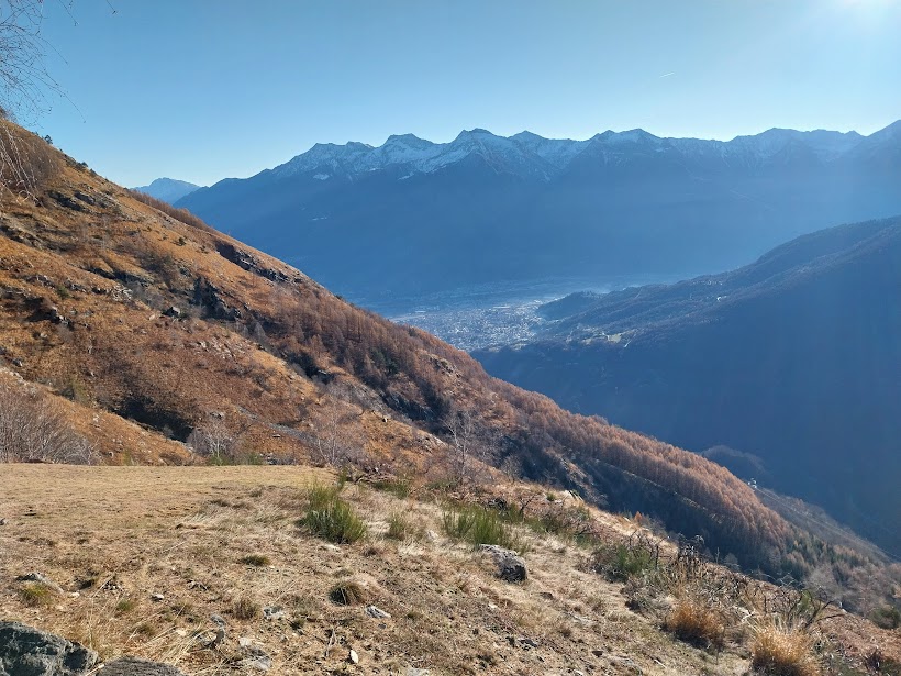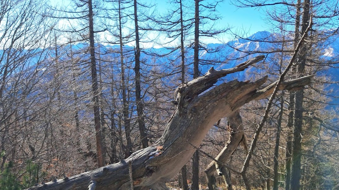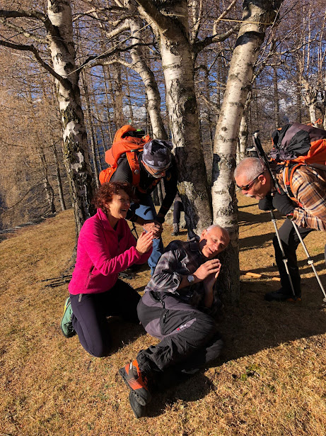 Lunga pausa per guardarci un po’ in giro ed ammirare il panorama su Domodossola, che gli amici di Verbania chiamano ironicamente Alpe Domo, mentre noi chiamiamo “pozza” il loro lago. I bontemponi trovano anche modo di improvvisare un presepe vivente con Gesù Bambino, Maria, il bue e l’asinello. Poco sopra si entra nel bel bosco di faggi.