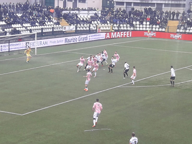 per la Pro che, pur senza il suo uomo migliore ovvero Vives, blocca un Palermo in crisi reduce da tre stop di fila. Quinto risultato utile consecutivo per Grassadonia, che con un po’ di fortuna poteva trasformarsi in un successo, ma i bianchi pagano l’assenza di un attaccante degno di tal nome: Morra ha solo corsa e volontà, Reginaldo è poco mobile e non va mai al tiro e mostra l’età, inguardabile Raievic quando entra, statico e poco voglioso. L’unico che salta l’uomo, dopo che viene immesso in campo, è Kanoute. Troppo poco per sperare di segnare sfruttando magari i soliti inserimenti di Germano e Castiglia. Buona invece la prestazione della difesa che doveva fronteggiare un attacco grandi firme. Nonostante sia stata sottoposta ad una grande e continua pressione la retroguardia si è ben disimpegnata con Konate sugli scudi, il più elegante del gruppo. Primo tempo con Palermo che mantiene il controllo del gioco, ma non si rende mai pericoloso. Tutti chiusi i varchi con una Pro attenta. La migliore occasione per i bianchi: Morra serve Ghiglione che mette in area dove Castiglia è contratto al momento del tiro. Al 39’ Pomini si deve distendere per deviare un tiro ravvicinato di Reginaldo, poi Castiglia manda alto. Nel macchinoso Palermo l’unico che crea superiorità numerica è Coronado con i suoi spunti, ma Tedino lo toglierà nel II tempo. Ad inizio ripresa l’unica palla gol confezionata dal deludente duo Morra-Reginaldo, ma il tiro dell’ex Siena è banale e centrale. Più pericoloso il Palermo. Prima Moreo manda alto di testa al 62’ poi si fa vivo Nestorowski ma il macedone non centra la porta (67’). Si deve giungere fino al 77’ per vedere Chocev che mette paura con un diagonale a Pignacelli. Grassadonia mette in campo Raievic , Kanoute e Altobelli. Solo il secondo dà maggior vivacità, gli altri due sono negativi: Raievic non va mai al tiro e perde anche alcuni palloni preziosi, Altobelli spreca la migliore occasione al 85’: contropiede con il Palermo sbilanciato, ma il centrocampista, invece di serivire Kanoute tutto solo preferisce sparacchiare alto. E nel finale Trajanoski obbliga Pignacelli alla deviazione evitando la beffa. Pro che sarà di nuovo in campo a Cesena martedi’ sera in una sfida salvezza e poi avrà una gara da ultima spiaggia in casa con il Perugia che ha ingaggiato Diamanti, un giocatore che avrebbe fatto bene a questa Pro coraggiosa, ma anemica.