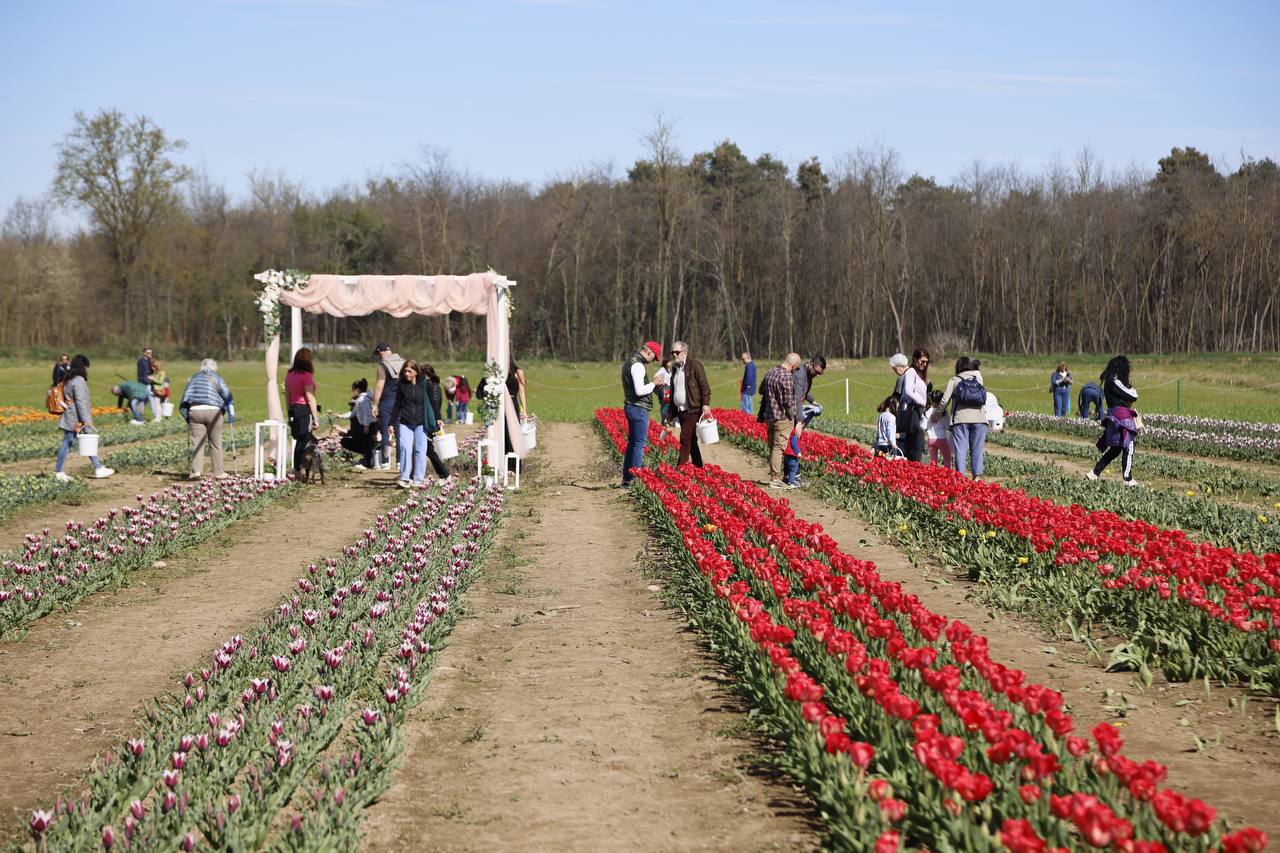 CAMERI - 31-03-2025 --Sono oltre 115.000 i tulipani di 20 varietà diverse piantumati a Cameri presso Fiorelilla, per l'edizione 2025 di Tulipasì, il campo di autoraccolta di tulipani. Aperto da sabato 29 marzo, nel fine settimana sono già stati numerosi i visitatori. Per i primi giorni il biglietto sarà gratuito, visto che la fioritura è al 20%.