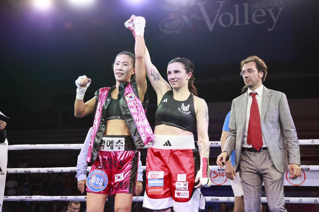 NOVARA - 15-06-2025 -- Si è concluso in parità l'incontro valido per il campionato mondiale WBA Gold Pesi Mosca femminile svoltosi sabato 14 giugno al PalaIgor di Novara fra la novarese Martina Bernile e la sudcoreana Hey Soo Park. I tre giudici hanno infatti dato i seguenti verdetti: 96-94, 94-96 e 95-95. Così facendo il titolo resta vacante. per Bernile era il secondo tentativo per la conquista del titolo iridato.