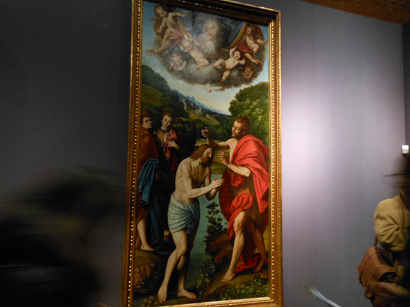 stampa della mostra "Il Rinascimento di Gaudenzio Ferrari" che sarà inaugurata ufficialmente domani, sabato 24 marzo, alle 11, nel salone dell'Arengo del Broletto. La mostra suddivide la carriera dell'autore valsesiano del Cinquecento su tre sedi: Varallo (inizio carriera), Vercelli (maturità) e, appunto, Novara (ultimi dieci anni di carriera). Nel periodo preso in esame dall'esposizione al Broletto, come ha sottolineato uno dei curatori della mostra, Giovanni Agosti, Gaudenzio Ferrari cerca di lanciarsi e farsi conoscere a Milano. Complessivamente, nei tre siti espositvi, sono presenti 110 opere. L'esposizione novarese si apre con un vero capolavoro: lo sposalizio di Santa Caterina. L'opera era inizialmente prevista di predella con formelle raffiguranti angioletti, ora recuperate e collocate accanto. E poi ancora, pale, fra le quali quelle parzialmente recuperate nella chiesa di Santa Chiara a Miilano, dopo la distruzione della stessa. Altre opere hanno anche traccia della mano di Giovanni Battista della Cerva, novarese, che, ad esempio, portò a termine l'"Ultima cena" della chiesa di Santa Maria della Passione. Fra gli affreschi, anhe quelli della cappella di Santa Maria della Pace, solitamente esposti alla Pinacoteca di Brera, che al Broletto hanno uno spazio adeguato. Fra le opere esposte, anche una prima assoluta: un dipinto inizialmente attribuito a Gaudenzio Ferrari, ma di Ortensio Crespi, proveniente dall'Isola di San Giulio. Tutte le info sulla mostra: www.gaudenzioferrari.it. (N.C)