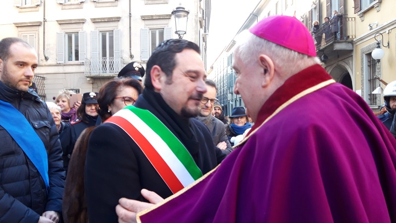 NOVARA – 22-01-2019 - Fede e tradizioni a Novara per la patronale di San Gaudenzio. Oggi, martedì 22 gennaio, come di consueto la città si è fermata per la celebrazione in onore del patrono. Ad aprire la giornata dedicata a Gaudenzio è stato il corteo civico lungo le vie della città. Cerimoniale consolidato da tempo: partenza dal municipio delle autorità civili e militari per arrivare sotto la Cupola. Parte integrante della “scenografia” della festa, le alte uniforme dei Carabinieri a cavallo e gli immancabili banchetti dei “marunat” con le loro castagne. Fuori dalla basilica di San Gaudenzio le autorità, insieme ai canonici del Capitolo gaudenziano, hanno atteso il vescovo Franco Giulio Brambilla per compiere il tradizionale “omaggio del fiore”. I cesti di fiori metallici, condotti in corteo dai consiglieri comunali, sono stati collocati nel gigantesco lampadario che sovrasta il centro della basilica. Come da tradizione, esso viene prima posizionato a terra e poi, riportato in alto, sotto gli occhi emozionati dei novaresi accorsi a vedere ancora una volta l’antico ed inimitabile rito. A seguire la Messa officiata dal vescovo, Monsignor Franco Giulio Brambilla.