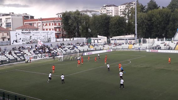 VERCELLI 08-09-2019 – Torna al successo la Pro battendo l’Albinoleffe che s è reso pericoloso solo nel finale quando Moschin ha salvato il risultato su Ruffini. Pro tonica nel I tempo, ma incapace di ripartire nella ripresa quando avrebbe potuto chiudere il match. Successo comunque meritato grazie ad un gol di Cecconi che ha deviato un tiro di Varas, calato nella ripresa. Migliore in campo Azzi: ottime le sgroppate, buoni gli assist, utile in fase di recupero, in ripresa Schiavon, sufficiente la difesa dove Quagliata è meglio in fase propositiva che difensiva. Al 13’ Vargas va vicino al gol su suggerimento di Azzi. Al 23’ dopo una serie di corner, il gol che decide il match. Vergas mette in mezzo, irrompe Cecconi che devia quanto basta per ingannare Savini. Alla mezz’ora dopo un gol in mischia annullato a Cecconi, l’ex Arzachena si vede respingere fortunosamente un suo tiro ravvicinato dal portiere. Al 36’ Moondinico si rende pericoloso di testa: blocca Moschin. Ripresa con la Pro più guardinga. Alza il baricentro la squadra ospite , ma non si rende mai pericolosa se non nel finale. Al 38’ Ruffini si trova a tu per tu con Moschin: sembra gol fatto, ma il portiere respinge. E 3’ dopo ancora Ruffini mette paura alle bianche casacche, ma il pallone sibila fuori. Pro che nel finale vede il rientro di Comi: il giocatore sarà utile nel prosieguo del torneo.