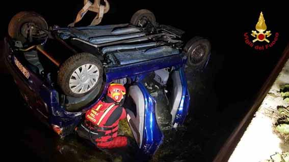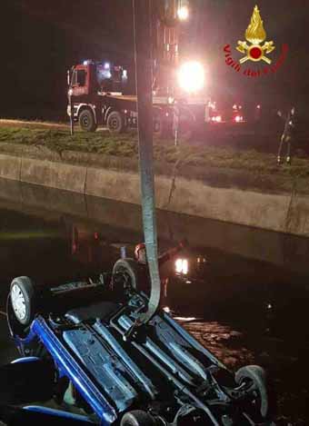 CASTELLAZZO NOVARESE -08-12-2019 - Un incidente stradale si è verificato poco prima delle 23 di ieri sera, sabato 7 dicembre, a Castellazzo Novarese: un'auto si è ribaltata finendo in un canale. I vigili del fuoco di Novara sono intervenuti con autopompa, un automezzo per il soccorso fluviale ed un'autogru ed hanno estratto dall'auto i tre occupanti, che hanno poi consegnato nelle mani del personale del 118. I feriti sono stati trasportati all'ospedale di Novara. Sempre i vigili del fuoco, mediante tecniche di derivazione fluviale/alluvionale hanno messo in sicurezza lo scenario con il recupero del veicolo.