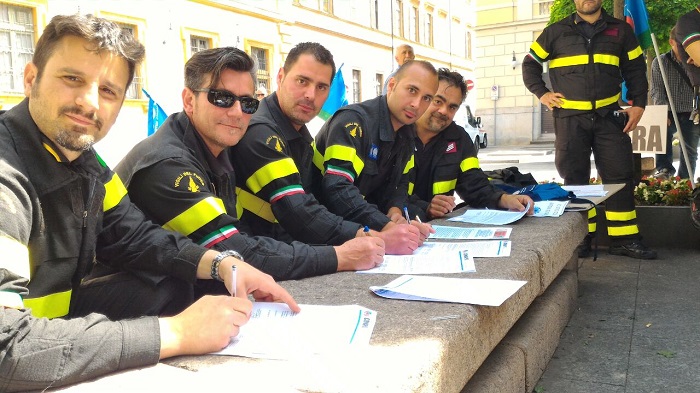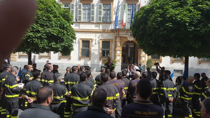 NOVARA-23-05-2017- Si sono dati appuntamento da Verbania, Vercelli, Biella e appunto Novara, per far sentire ancora una volta la loro voce di indignazione. Erano un centinaio i Vigili del fuoco, capeggiati dal sindacato autonomo di categoria Conapo, ieri, lunedì 22, davanti la prefettura di Novara. “Una situazione che va avanti da trent’anni- spiega Alessandro Basile segretario di Novara. Non chiediamo privilegi- continua- ma equiparazione con i corpi dello stato. Si taglia sulla sicurezza ai danni del cittadino e questo noi Vigili del fuoco non possiamo più permetterlo. Ognuno di noi ha specializzazioni e abilitazioni che ci consentono di fornire un pronto e professionale servizio al cittadino, eppure, siamo il corpo dello Stato meno retribuito”. I Vigili del fuoco hanno manifestato sostenendo il collega che da solo sta facendo lo sciopero della fame a Roma, l’ispettore Antincendi Brizzi Antonio, segretario generale del Conapo. Dopo 8 giorni di sciopero della fame ha avuto un malore; è stato soccorso per uno svenimento e poi trasportato in ambulanza al policlinico Umberto I° ove si trova tutt’ora sottoposto agli accertamenti sanitari. “Ha ripreso conoscenza e sta meglio ma è testardo- hanno spiegato in piazza i manifestanti- insisteva per tornare subito in piazza, vuole parlare con il ministro Minniti in merito al decreto Madia sui Vigili del fuoco che il consiglio dei ministri dovrà approvare a giorni. Non si da pace sino a che non riuscirà a dare ai Vigili del fuoco , oggi sottopagati di 300/450 euro al mese rispetto agli altri corpi, la stessa dignità lavorativa che hanno tutti gli uomini in divisa dello Stato. E’ stanco e provato dallo sciopero della fame ma è anche stanco delle falsità dei politici che ci lodano quando salviamo vite umane ma ci mancano di rispetto quando si discute di stanziamenti”. Nel mentre una delegazione di Novara, Verbania, Vercelli e Biella ha incontrato il prefetto Francesco Paolo Castaldo, con preghiera di farsi carico dell’umiliante situazione che un vigile del fuoco vive ogni giorno: dai 300 ai 450 euro in meno di un poliziotto! Il Prefetto ha accolto la delegazione e rassicurato il suo massimo sforzo e impegno, lo stesso che ogni Vigile del fuoco mette al servizio dei cittadini e dello stato. Un delegato regionale del Conapo, Il vigile Michele Pipitone, ha concluso spiegando che “per avere la giusta equiparazione servono gli ultimi 50 milioni di euro. Il Governo ha messo in campo 103 milioni di euro (insufficienti appunto), ma la beffa più grande è che questi soldi non saranno tutti destinati agli uomini in divisa, coloro i quali giornalmente al pari o più degli altri corpi, rischiano la vita. Una proposta inaccettabile che vede però il bene placido dei Sindacati Confederali”. Alla manifestazione sono intervenuti in appoggio al corpo dei Vigili del fuoco anche gli esponenti politici del Novarese.