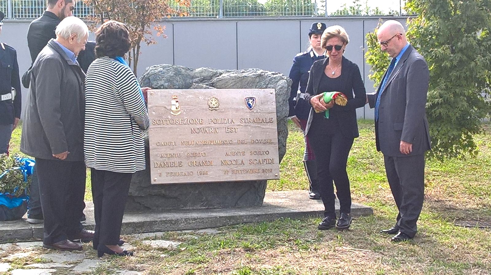 questa mattina (mercoledì 27 settembre) alla caserma della Polizia Stradale di Novara Est dove si è svolta la cerimonia di intitolazione di una via e di un’aula, oltre che lo scoprimento di una targa, in ricordo di Nicola Scafidi, l’agente in servizio alla polstrada morto esattamente un anno fa in un tragico incidente. E alla cerimonia, cui hanno partecipato le massime autorità cittadine (dal Prefetto al Questore, dal Procuratore capo ai massimi esponenti delle forze dell’ordine), erano presenti non solo i genitori di Nicola, la mamma Maria, il papà Enrico e il fratello Antonino, ma anche i familiari di un altro poliziotto morto in servizio in un incidente accaduto quasi nello stesso punto, nel febbraio del 1998, Daniele Grandi cui è intitolata la caserma di Novara Est. “Siamo qui per ricordare Nicola – ha esordito il direttore del servizio di Polizia Stradale, dottor Giuseppe Bisogno – ma anche Daniele, e tutti gli agenti morti in servizio. Quello che ora prevale è il sentimento, la commozione, ma dobbiamo riflettere sul tema, drammaticamente attuale, della sicurezza stradale. Noi, come grande famiglia della polizia stradale, stiamo affinando le tecniche operative per proteggere il nostro personale ma abbiamo bisogno dei cittadini”. “La polizia stradale – ha aggiunto il dottor Roberto Sgalla, direttore delle specialità della polizia – è l’articolazione della polizia di Stato che ha pagato il più alto tributo; il modo migliore per rendere onore ai nostri caduti è quello di continuare il lavoro. Abbiamo dalla nostra parte la solidarietà della gente”. “Nicola non era solo un ottimo agente ma una persona solare, una figura di esempio – ha aggiunto il sindaco Alessandro Canelli – La comunità novarese è stata molto colpita da quella tragedia. Ricorderemo Nicola per l’esempio e per tutto quello che era”.