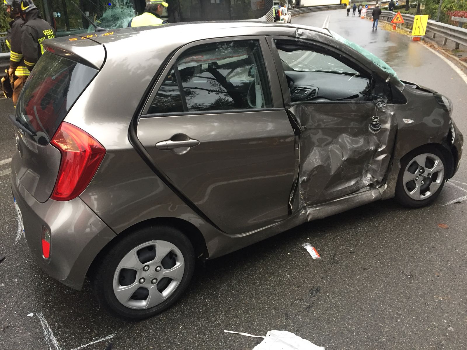 dell'incidente di questa mattina sul cavalcavia San Martino, fra un bus ed un'auto. Sul posto, la polizia locale, vigili del fuoco per la messa in sicurezza dell'area ed il 118 per il soccorso del conducente dell'auto rimasto ferito.