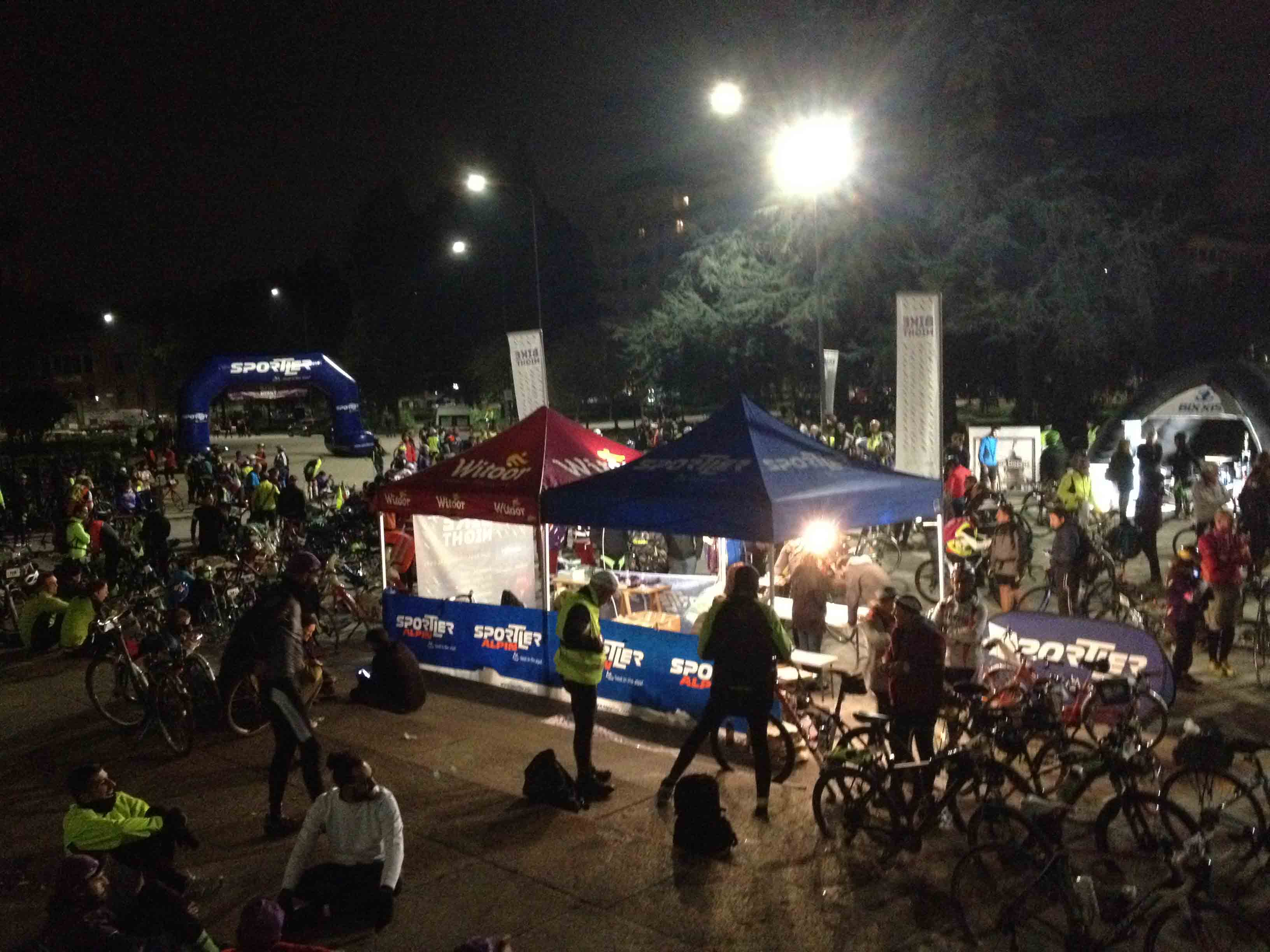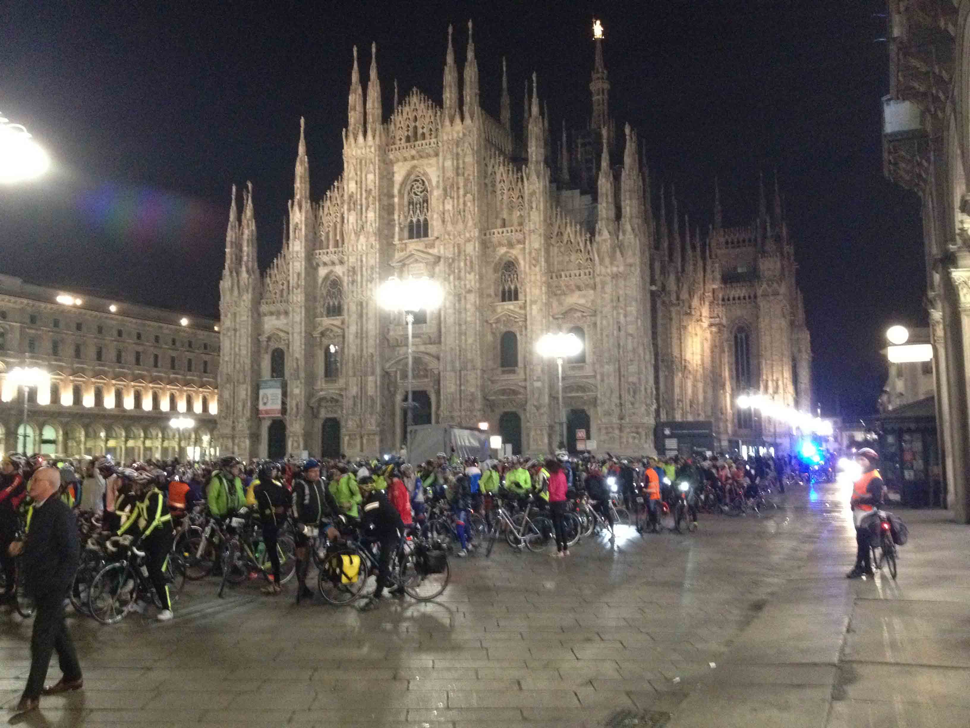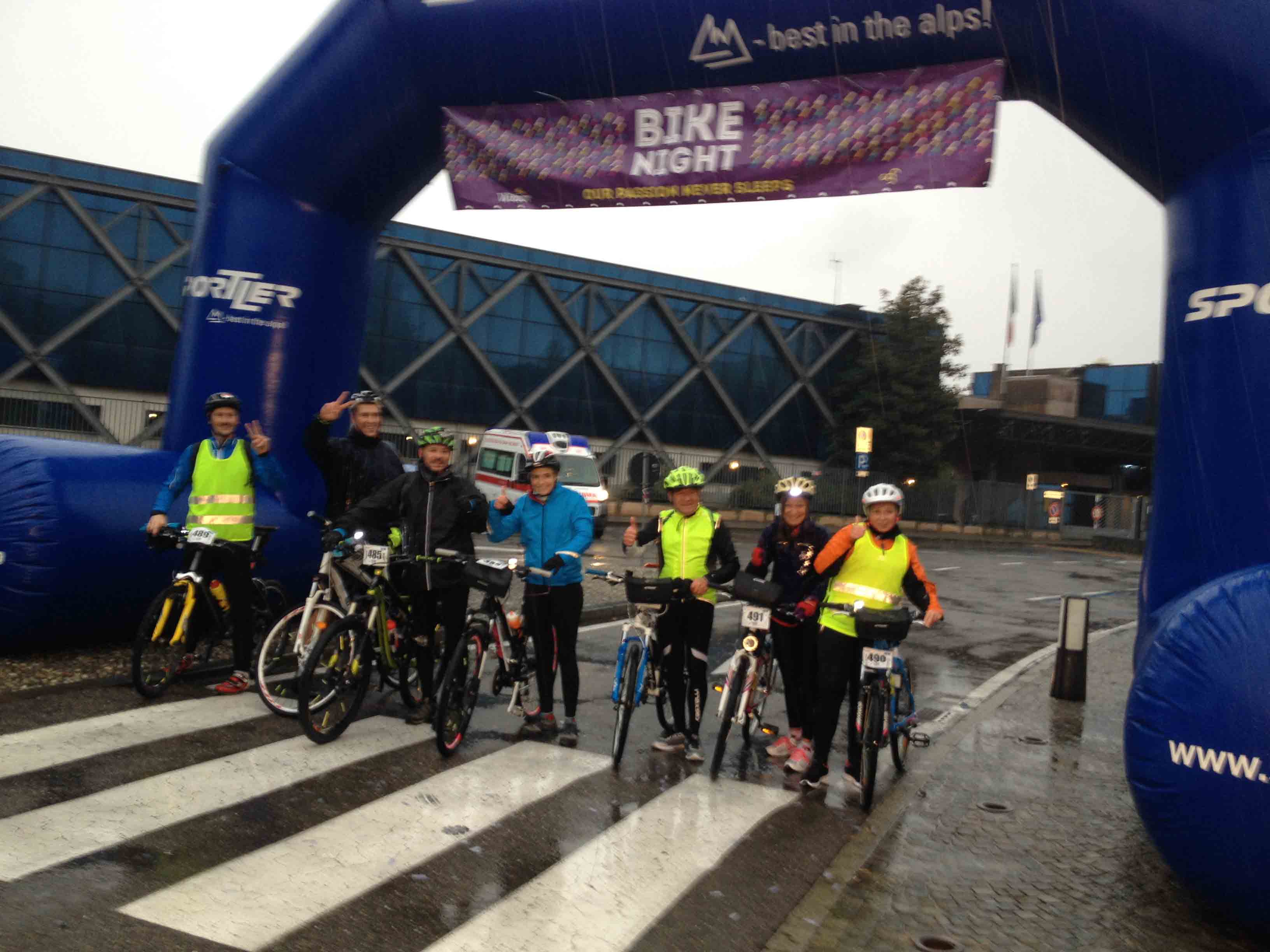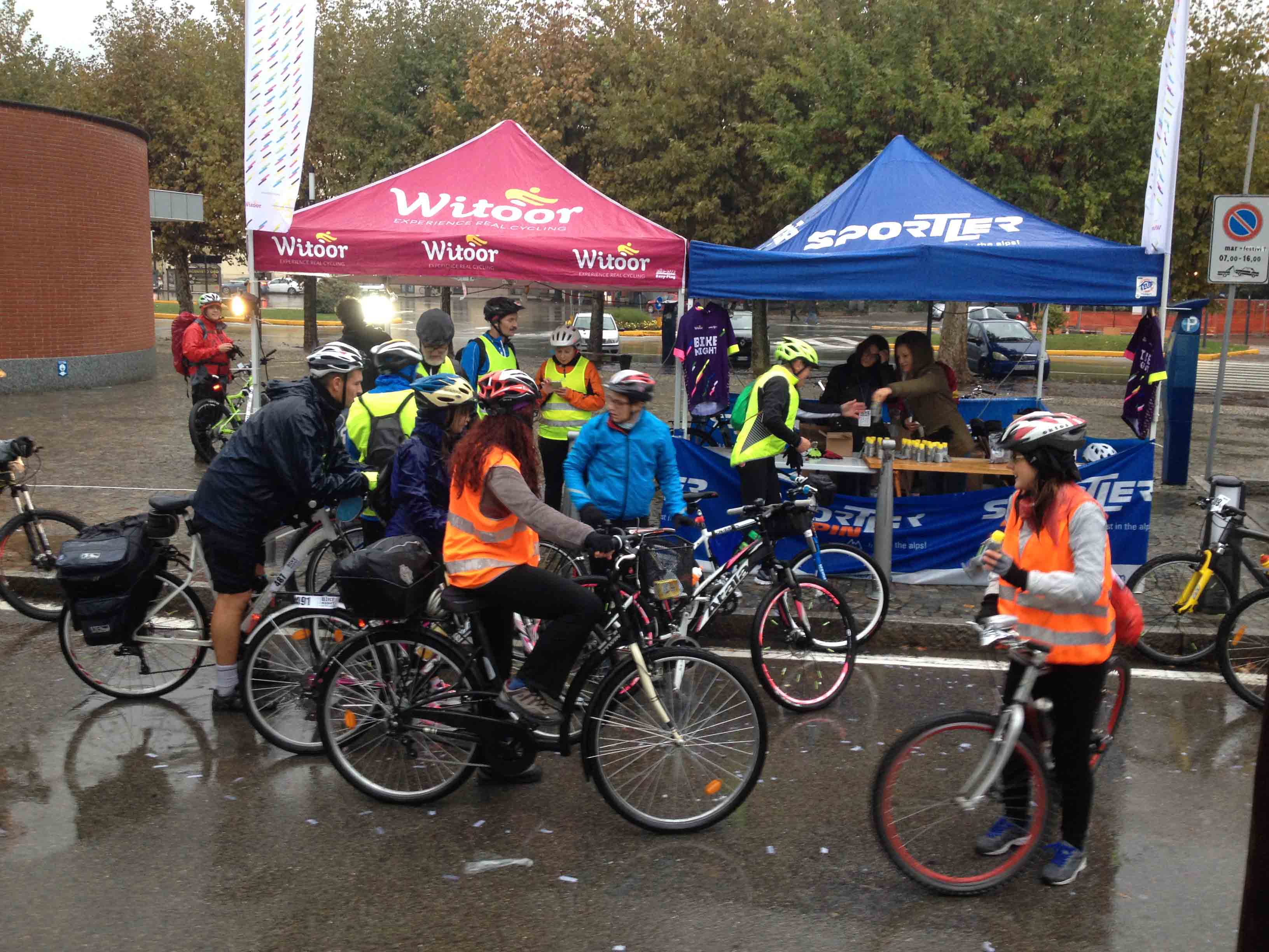 i concorrenti della Bike Night Milano-Lago Maggiore. Erano 536 gli iscritti che sono partiti da Milano in piazza Leonardo da Vinci, passati sotto la Madonnina del Duomo, per poi giungere ai Navigli e percorrere 98 chilometri, di cui l'88 % su piste ciclabili, prima di raggiungere Arona e fare colazione in Piazza del Popolo . Nata nel 2014 a Ferrara con 200 partecipanti, Bike Night è arrivata, nel 2016, in cinque città: Ferrara (quest'anno ha raggiunto 1500 ciclisti), Bolzano, Udine, Verona e Milano. La filosofia è ovunque la stessa: non conta il cronometro, non c'è ordine di arrivo. Spiegano gli organizzatori della Witoor: “C'erano tutti i tipi di ciclisti alla Bike Night: l'agonista, quelli su scatto fisso, le famiglie, gruppi di ragazzi, uomini donne e bambini, il più piccolo di soli 12 anni. E' stata una festa, dove non serve agghindarsi ma si interpreta finalmente soltanto sè stessi”. Organizzato da Witoor e Città della Cultura/Cultura della Città, il progetto Bike Night 2016 con cinque tappe in Italia è reso possibile dal contributo di una serie di sponsor. L'edizione meneghina - lacuale ha avuto il patrocinio del Comune di Abbiategrasso, Golasecca, Sesto Calende, Castelletto Ticino e Arona. “Peccato per la pioggia che dalle 3 del mattino è iniziata a cadere nella zona del Ticino ed ad Arona. I primi due (un atleta con bici da corsa ed uno in mountain bike) sono giunti intorno alle 4, dopo essere partiti a mezzanotte, gli ultimi intorno alle 8 del mattino. Il 25% dei concorrenti erano donne ed alcuni avevano delle bici sicuramente inconsuete. Solo una ventina si sono ritirati strada facendo. La notte purtroppo non era illuminata dalla luna, ma tutti i concorrenti avevano dei fanali e dei giubbotti catarifrangenti”. L'organizzazione di Witoor ha assicurato assistenza meccanica e sanitaria lungo il percorso, e ha allestito un servizio di rientro in pullman (bici compresa) per chi volesse prenotarlo (o treno).