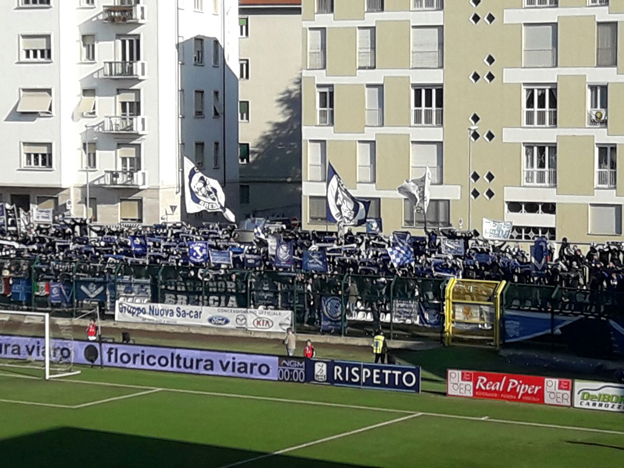 per l’assenza di un bomber adeguato in avanti, ma rischia anche il perdere: prima quando Bisoli ha dagli 11 metri la palla dell’1-0 (che manda fuori), poi nel finale quando Caracciolo costringe Pignacelli alla deviazione in corner e Ghiglione deve inseguire e stendere Embalo lanciato a rete in contropiede. Partita tra due squadre ricche di problemi. La Pro è andata più volte al tiro, ma Minelli non ha mai compiuto un intervento se si eccettua l’uscita di piedi contestata su Castiglia nella ripresa: per la Pro è rigore, ma è sembrato che il portiere abbia prima deviato il pallone e poi colpito l’avversario. E comunque il fatto sarebbe avvenuto fuori area. La Pro prosegue comunque la propria serie positiva frutto di due successi ed un pari odierno, ma ora avrà due gare difficilissime. Prima a Salerno senza Ghiglione, Castiglia e Bergamelli poi al Piola contro il Palermo. Nel I tempo occasioni migliori per i bianchi che le mandano tutte fuori. Al 18’ da Vives a Mammarella che serve tutto solo Ghiglione che manda fuori da buona posizione, un minuto dopo Reginaldo ciabatta fuori in area di rigore. Al 22’ è il generoso ma inconcludente Morra a mettere fuori di testa e al 27’ Konate non arriva su assist di Vives. Al 36’ il Brescia, che non aveva mai impensierito la difesa di casa, usufruisce di un rigore per un fallo netto quanto ingenuo di Bergamelli su Torregrossa. Bisoli però angola troppo e mette fuori. Nella ripresa ci prova Reginaldo in mischia. L’ex Siena ha buoni movimenti, ma avrebbe bisogno di chi lo supporti in area. Non certo Morra, ma neppure Raievic che sarà inguardabile quando subentrerà e neppure il fumoso Konatè. Con questi attaccanti ci prova Castiglia, già bomber con Ascoli e Cremona. Molto bella la conclusione di poco alta al 63’, più velleitaria quella in diagonale al 69’. Poi al 73’ l’episodio contestato con il portiere Minelli che esce alla disperata di piede. Nel finale dopo l’espulsione di Ghiglione, Caracciolo impegna su punizione al 91’ Pignacelli. Finisce 0-0 che sta stretto alla Pro con un Brescia modesto. I bianchi pagano l’assenza di una punta di peso che neppure il mercato di gennaio ha saputo regalare a Grassadonia. Salvezza difficile, ma la squadra ha lottato ed è uscita tra gli applausi del pubblico.