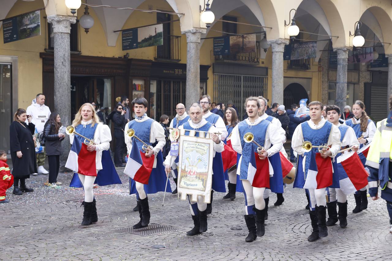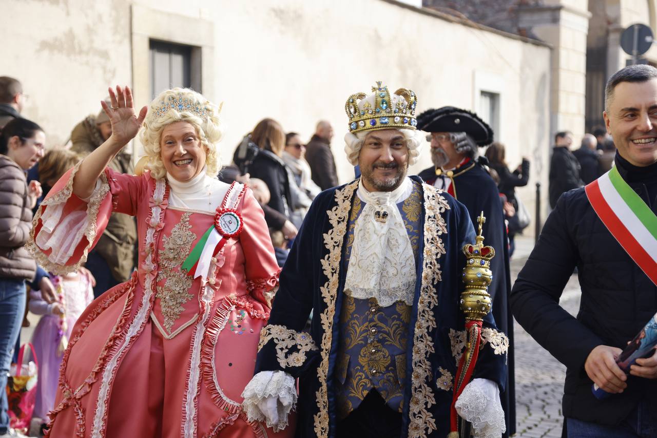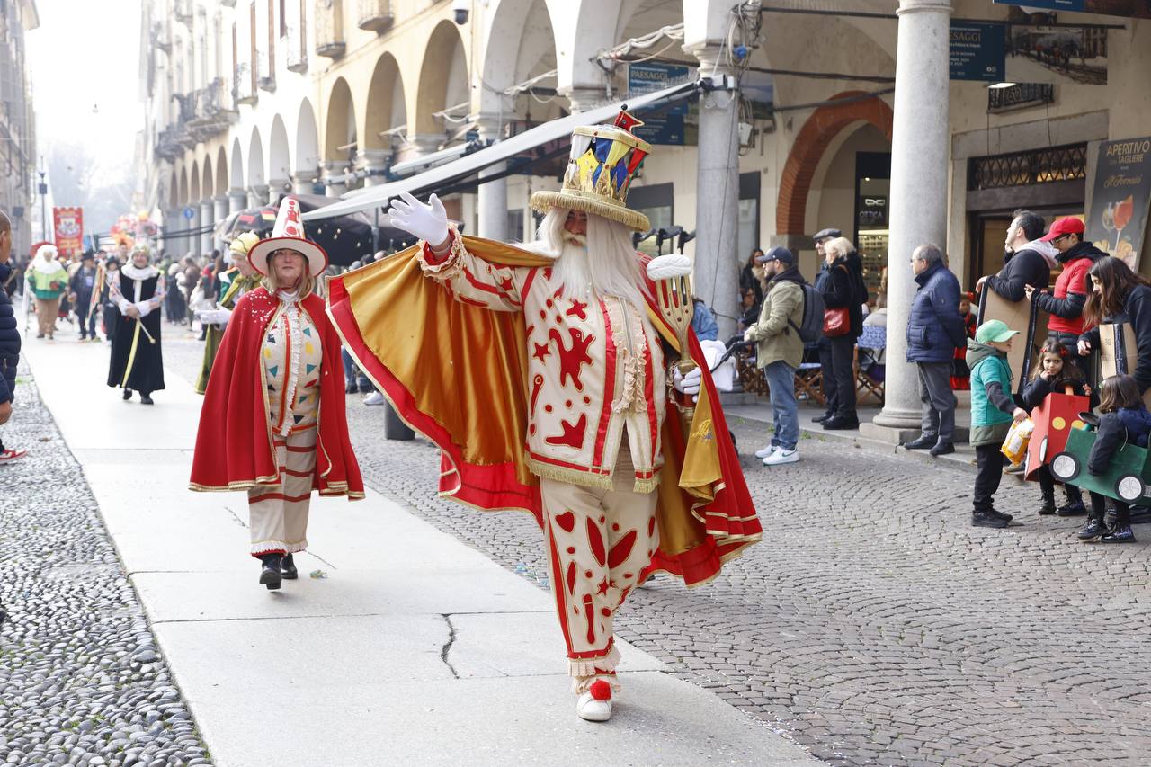 NOVARA - 23-02-2025 -- Un bel pomeriggio soleggiato ha fatto da cornice, domenica 23 febbraio, alla tradizionale sfilata per le vie cittadine del Carnevale Novarese. Padroni di casa Re Biscottino e la Regina Cuneta. La sfilata è partita dopo il ritrovo avvenuto sull'allea accanto al castello. Presenti alla manifestazione, alla quale per l'amministrazione era presente l'assessore Piantanida, 18 gruppi provenienti da tutta Italia e di figuranti in rappresentanza di altre 20 realtà nazionali. Per la prima volta erano presenti le maschere da Misterbianco, Ascoli Piceno. Presenti inoltre i rappresentanti del Com.It.Es. (Comitato Italiani all'Estero) Canarie, Francesco Emilio Fedele ed Engie Corvo, con i quali Re Biscottino e la Cuneta stanno coordinando la presenza di una nutrita delegazione di maschere italiane al carnevale di Santa Cruz di Tenerife, ai primi di marzo.
