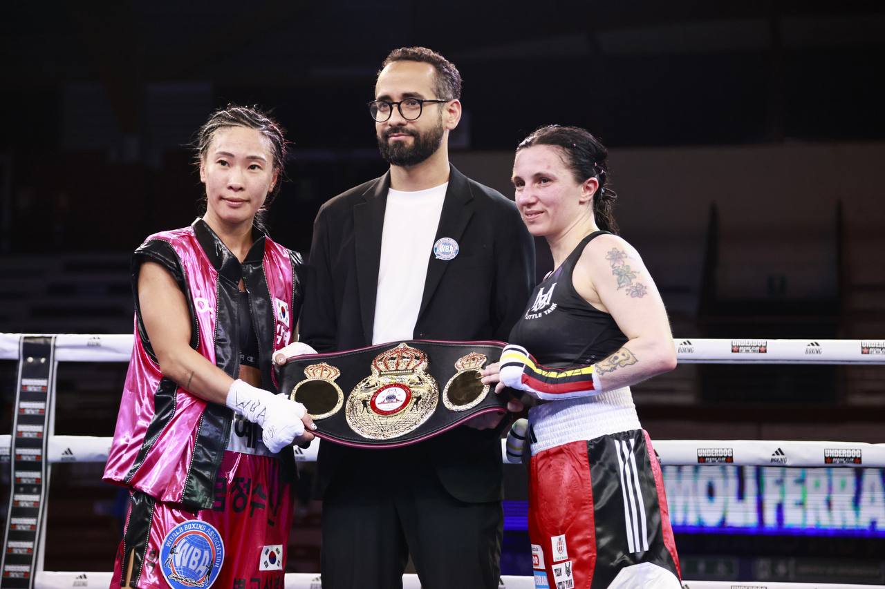 NOVARA - 15-06-2025 -- Si è concluso in parità l'incontro valido per il campionato mondiale WBA Gold Pesi Mosca femminile svoltosi sabato 14 giugno al PalaIgor di Novara fra la novarese Martina Bernile e la sudcoreana Hey Soo Park. I tre giudici hanno infatti dato i seguenti verdetti: 96-94, 94-96 e 95-95. Così facendo il titolo resta vacante. per Bernile era il secondo tentativo per la conquista del titolo iridato.