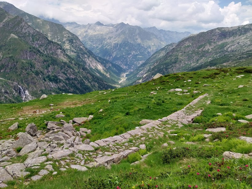 Il Colle del Turlo, 2738, prende nome da Türli, piccola porta in vallesano. Collega Valle Anzasca e Valsesia, Macugnaga con Alagna ed è uno splendido passaggio obbligato per il Tour del Monte Rosa e per la GTA. La bellissima mulattiera, ancora quasi intatta dall’Alpe Schena, 2005, al Colle, fu costruita negli anni venti del novecento dagli Alpini del Battaglione Intra, ma già nel tredicesimo secolo le popolazioni walser qui percorrevano un antico sentiero di origini medievali.