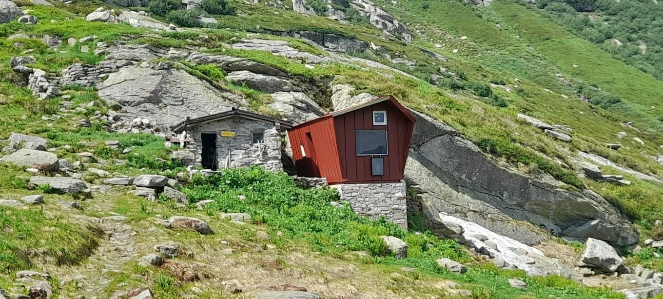 A una quota fra i 2100 e i 2150, a seconda che ci si fidi dei cartelli indicatori o delle cartine, all’Alpe Ratuligher, si trova il bellissimo bivacco voluto, insieme ad altri tre nell’Ossola, da Paolo Crosa Lenz quando presiedeva il Parco Veglia – Devero – Antrona. Il bivacco è dedicato a Emiliano Lanti, storico pastore della Val Quarazza. Ricordo che più di sessant’anni fa gli preparavo, quando era a valle, il caffè nel bar dei miei nonni in quel di Borca.